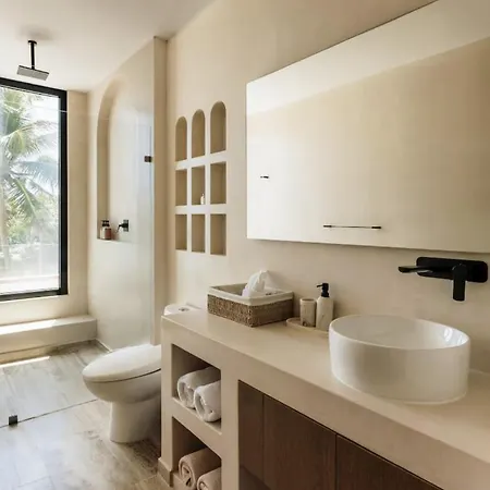 Beachfront Mansion For 24 Guests In Tulum Beach villa is situated a mere 5 minutes' walk from Beach, featuring such comforts as Wi-Fi and free private parking. Guests can enjoy yoga at the villa, located 4.5 km from the national park "Parque Nacional de Tulum".