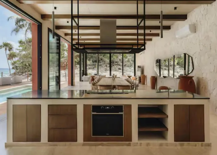 Beachfront Mansion For 24 Guests In Tulum Beach villa features a kitchen where guests can find an oven. The seafood restaurant Mateo's Mexican Grill is located around 100 metres away and serves Mexican dishes.